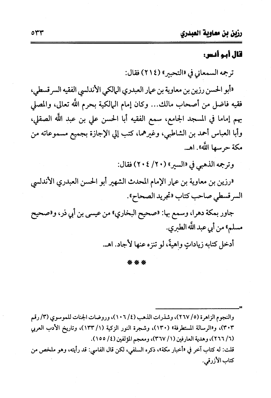 "رزين بن معاوية بن عمار الإمام المحدث الشهير أبو الحسن العبدري الأندلسي السرقسطي صاحب كتاب "تجريد الصحاح".