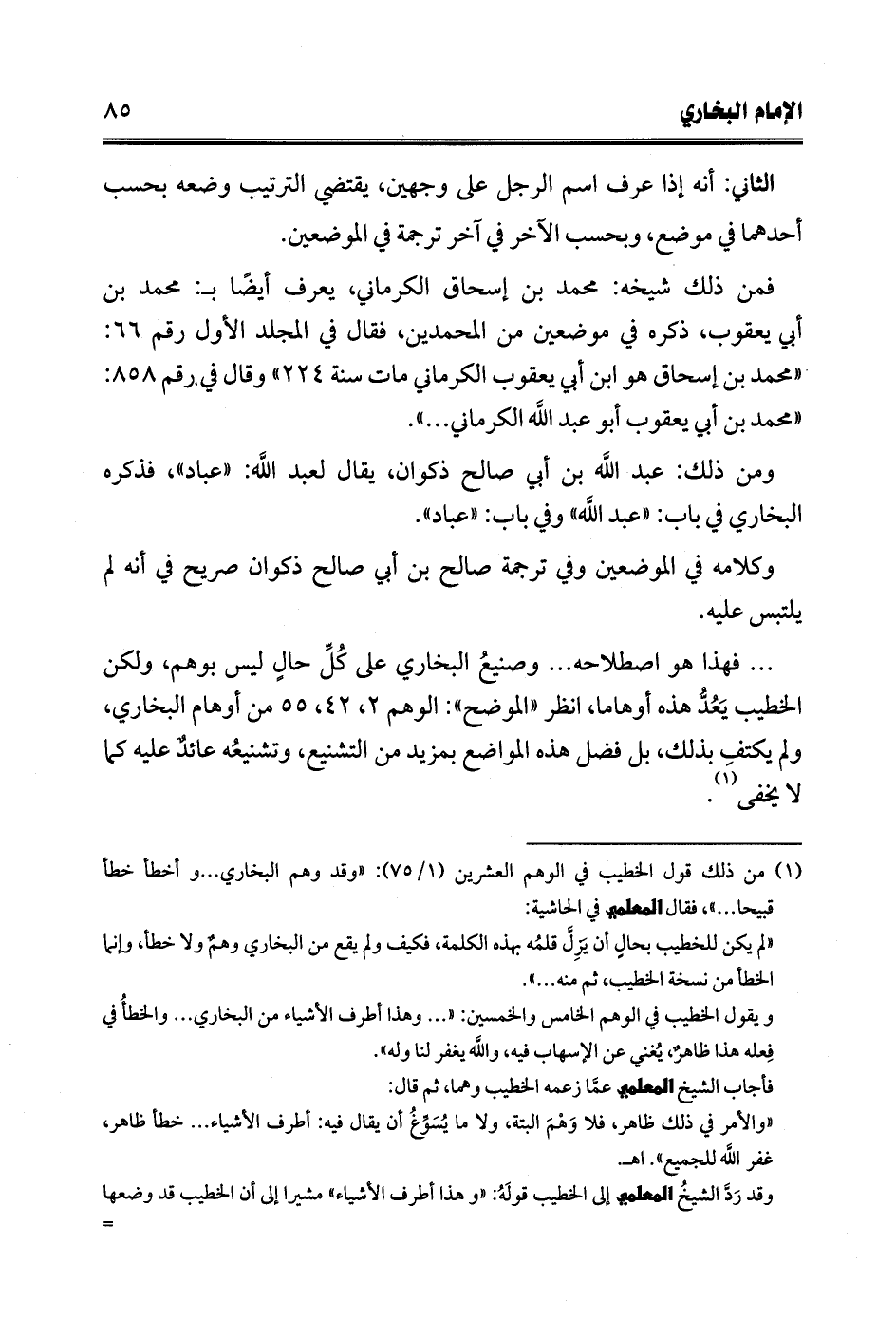 (¬1) من ذلك قول الخطيب في الوهم العشرين (1/ 75): "وقد وهم البخاري ... وأخطأ خطأ قبيحا ... "، فقال المعلمي في الحاشية: