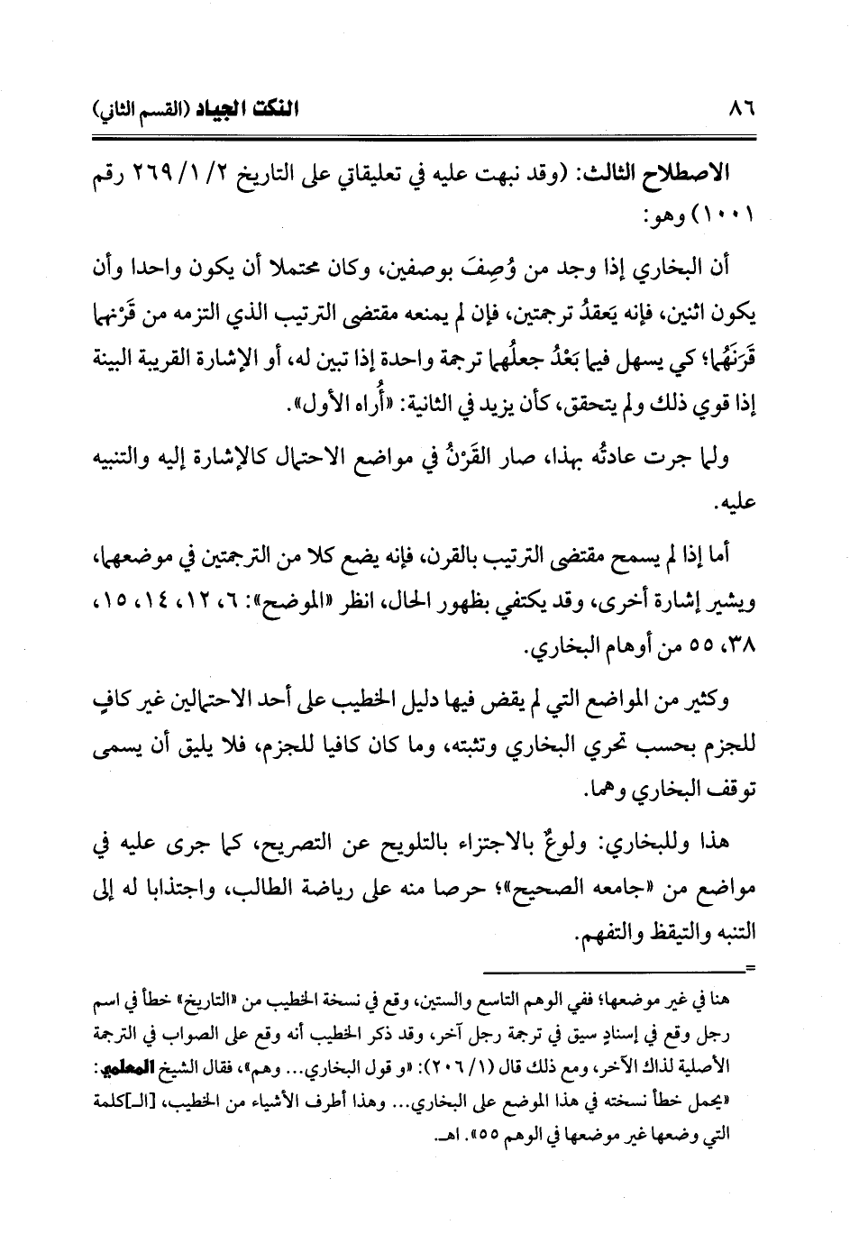وكثير من المواضع التي لم يقض فيها دليل الخطيب على أحد الاحتمالين غير كافٍ للجزم بحسب تحري البخاري وتثبته، وما كان كافيا للجزم، فلا يليق أن يسمى توقف البخاري وهما.