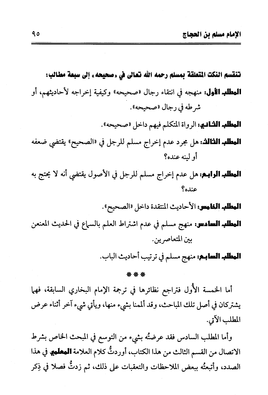 تنقسم النكت المتعلقة بمسلم رحمه الله تعالى في "صحيحه" إلى سبعة مطالب: