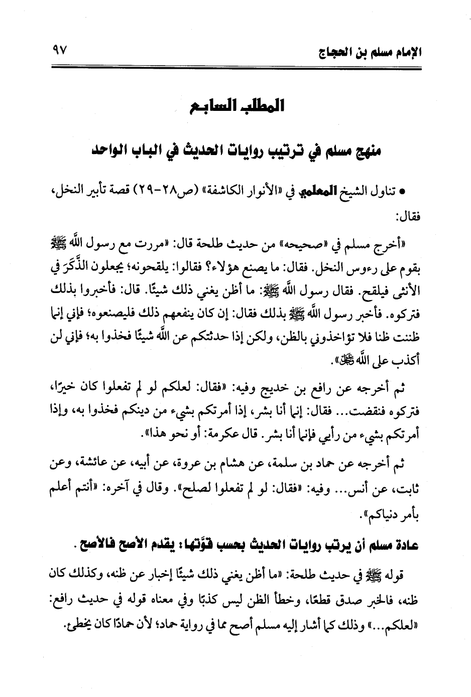 عادة مسلم أن يرتب روايات الحديث بحسب قوَّتها: يقدم الأصح فالأصح.