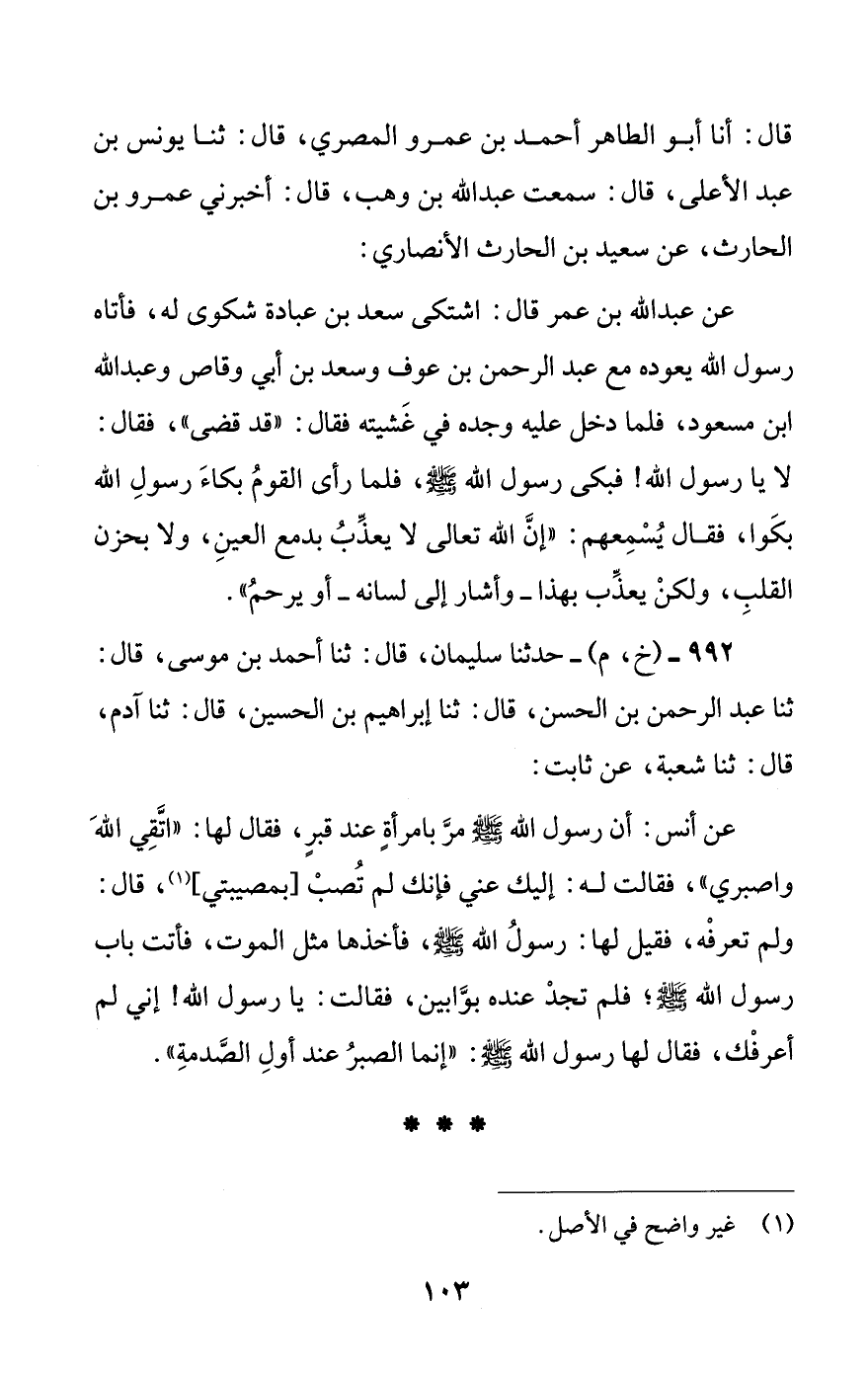 992 - (خ، م) - حدثنا سليمان، قال: ثنا أحمد بن موسى، قال: ثنا عبد الرحمن بن الحسن، قال: ثنا إبراهيم بن الحسين، قال: ثنا آدم، قال: ثنا شعبة، عن ثابت: