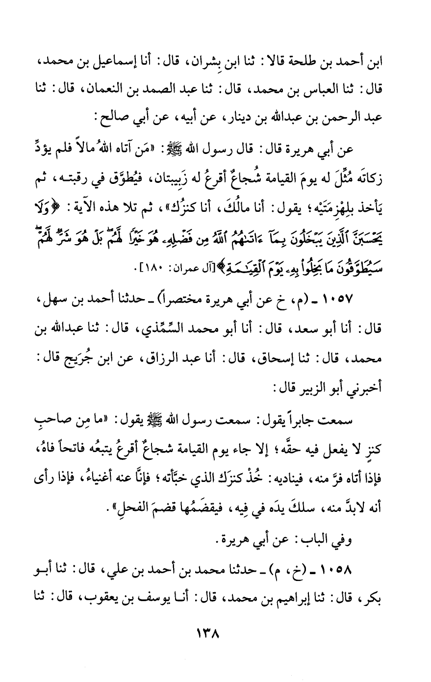 1057 - (م، خ عن أبي هريرة مختصرا) - حدثنا أحمد بن سهل، قال: أنا أبو سعد، قال: أنا أبو محمد السمذي، قال: ثنا عبد الله بن محمد، قال: ثنا إسحاق، قال: أنا عبد الرزاق، عن ابن جريج قال: أخبرني أبو الزبير قال: