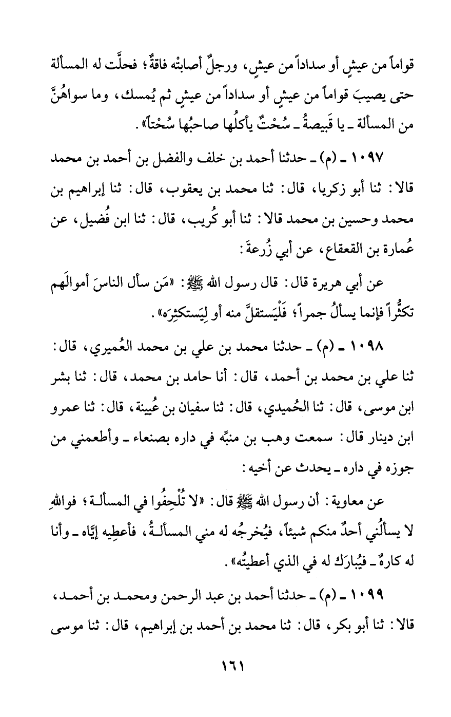1098 - (م) - حدثنا محمد بن علي بن محمد العميري، قال: ثنا علي بن محمد بن أحمد، قال: أنا حامد بن محمد، قال: ثنا بشر بن موسى، قال: ثنا الحميدي، قال: ثنا سفيان بن عيينة، قال: ثنا عمرو بن دينار قال: سمعت وهب بن منبه في داره بصنعاء –وأطعمني من جوزه في داره –يحدث عن أخيه: