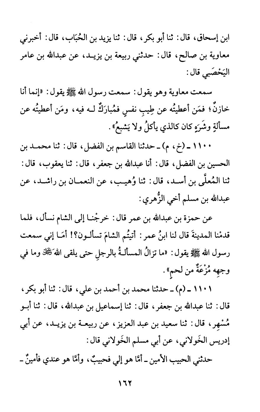 1100 - (خ، م) - حدثنا القاسم بن الفضل، قال: ثنا محمد بن الحسين بن الفضل، قال: أنا عبد الله بن جعفر، قال: ثنا يعقوب، قال: ثنا المعلى بن أسد، قال: ثنا وهيب، عن النعمان بن راشد، عن عبد الله بن مسلم أخي الزهري: