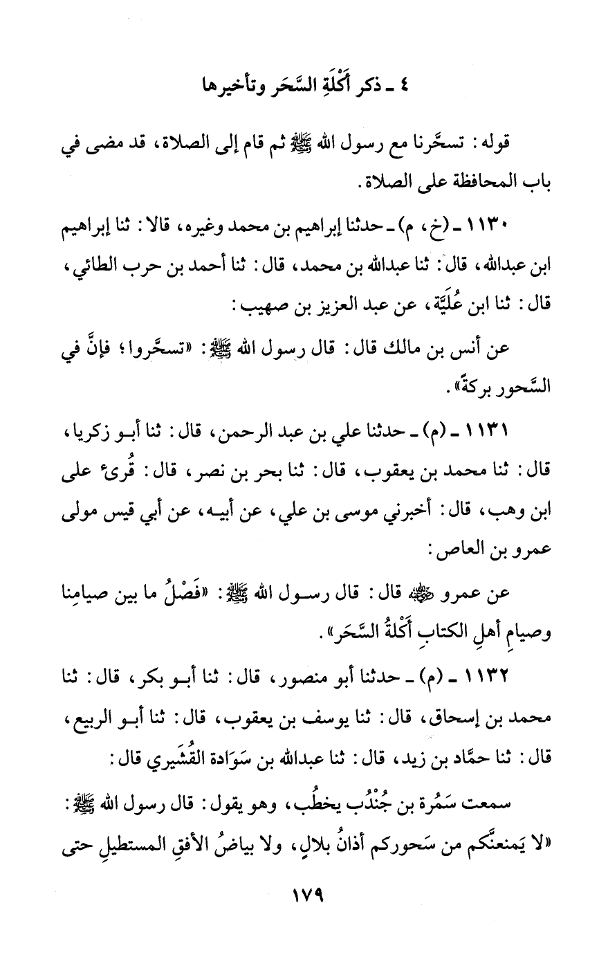 1130 - (خ، م) - حدثنا إبراهيم بن محمد وغيره، قالا: ثنا إبراهيم بن عبد الله، قال: ثنا عبد الله بن محمد، قال: ثنا أحمد بن حرب الطائي، قال: ثنا ابن علية، عن عبد العزيز بن صهيب: