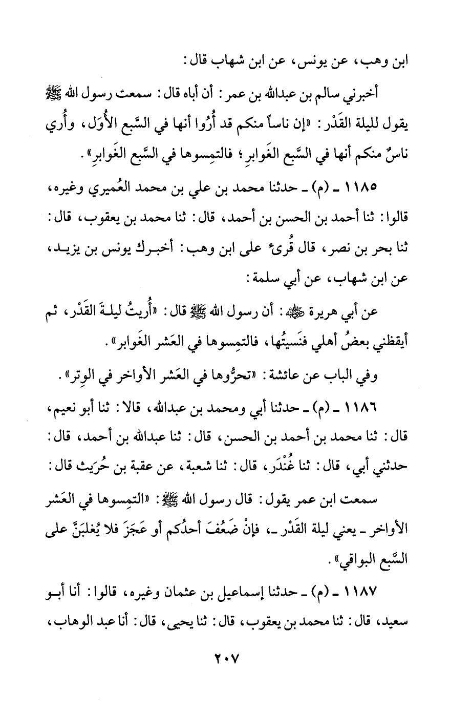 1185 - (م) - حدثنا محمد بن علي بن محمد العميري وغيره، قالوا: ثنا أحمد بن الحسن بن أحمد، قال: ثنا محمد بن يعقوب، قال: ثنا بحر بن نصر، قال: قرئ على ابن وهب: أخبرك يونس بن يزيد، عن ابن شهاب، عن أبي سلمة: