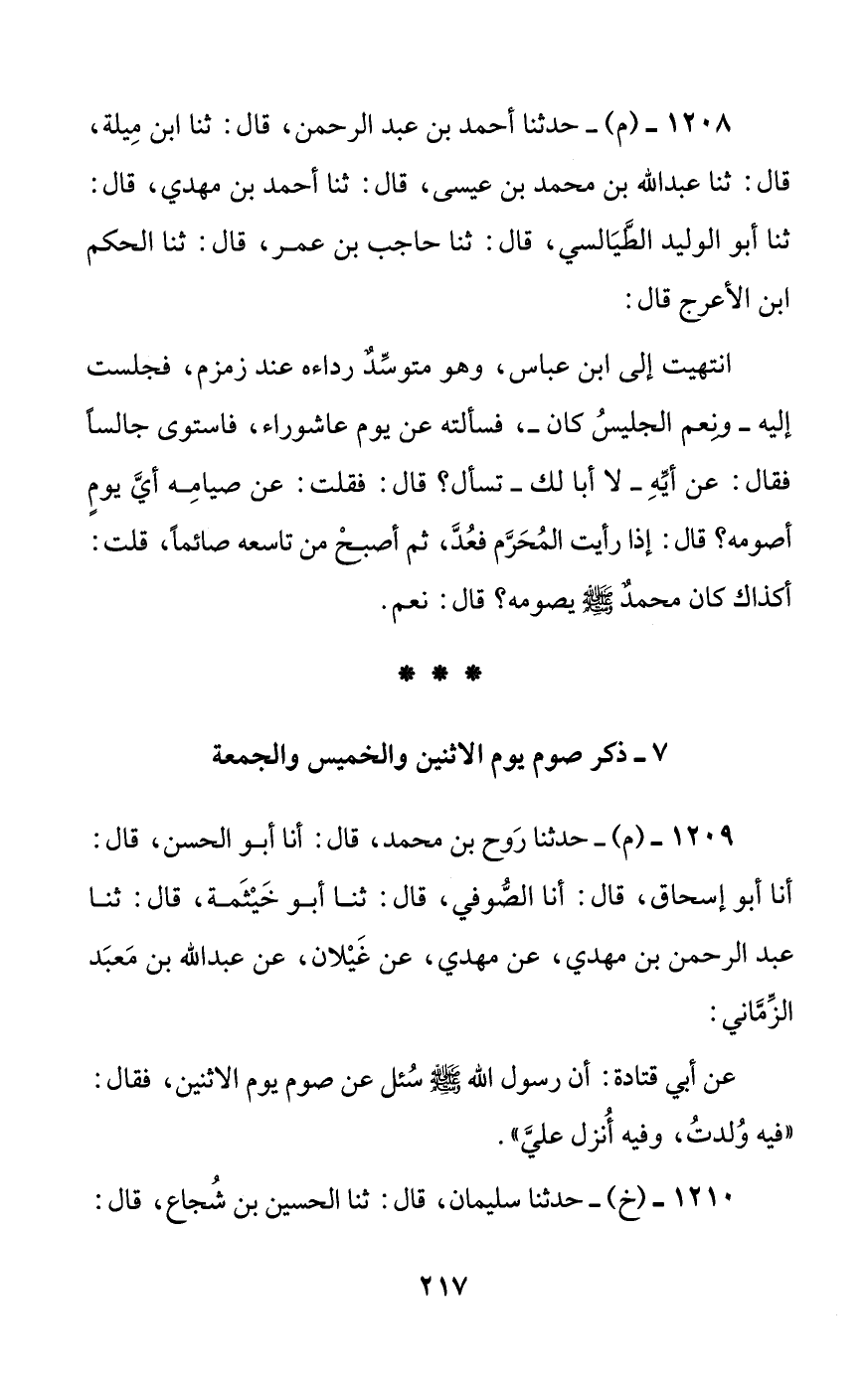 [7] ذكر صوم يوم الاثنين والخميس والجمعة
