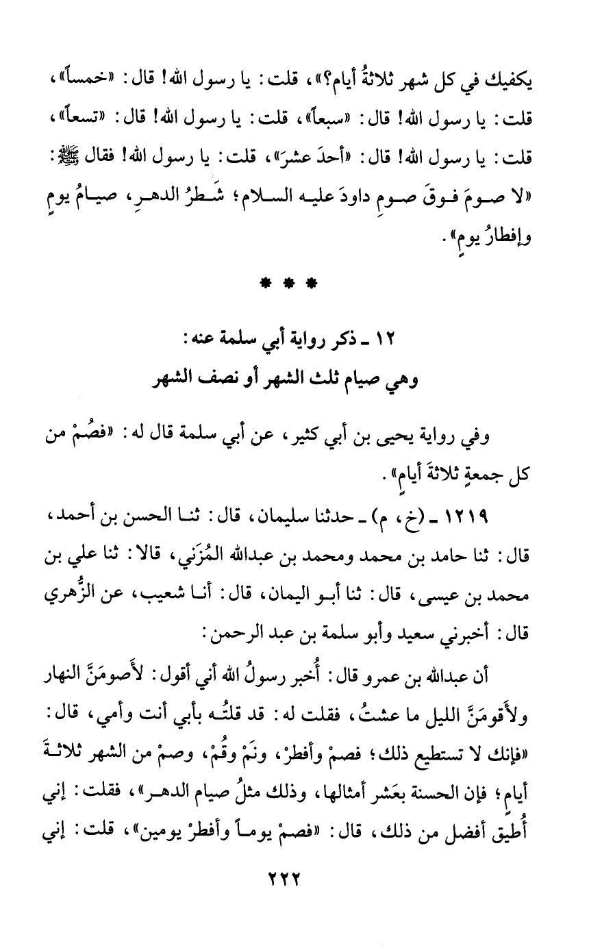 [12] ذكر رواية أبي سلمة عنه: وهي صيام ثلث الشهر أو نصف الشهر