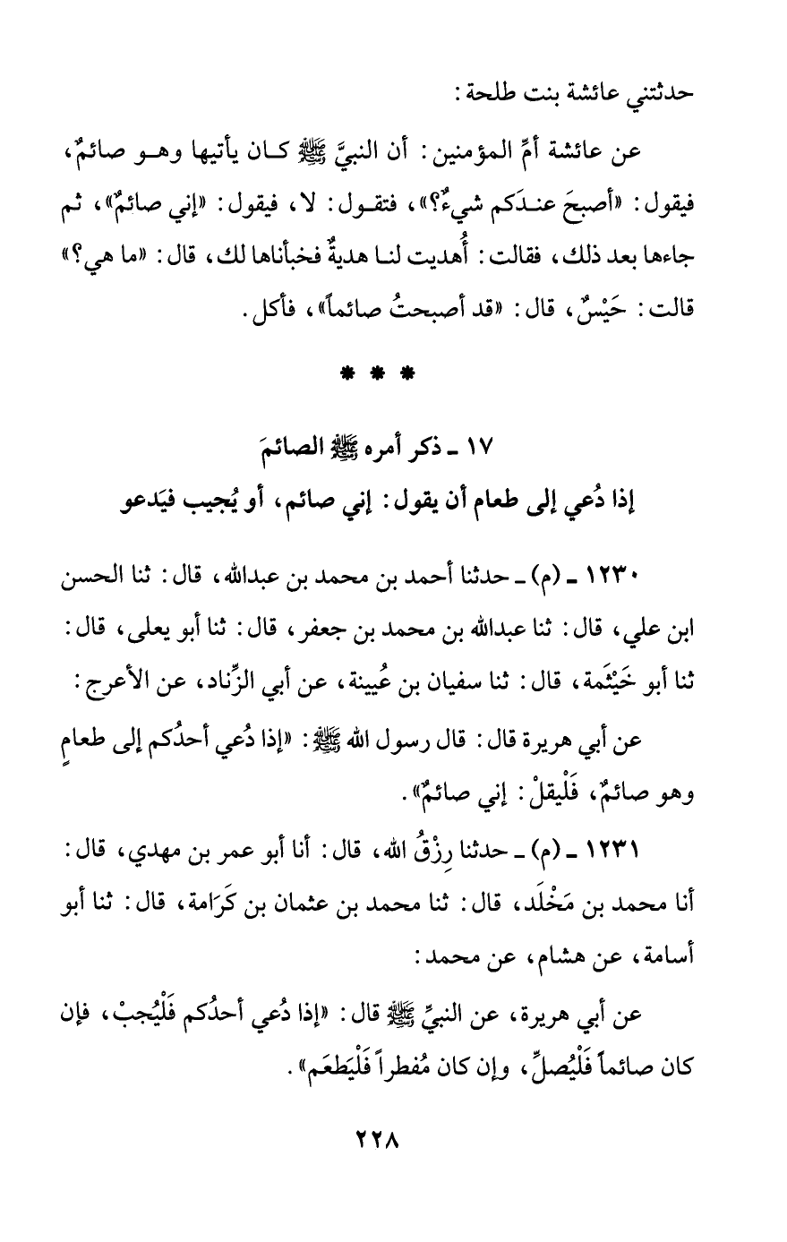 [17] ذكر أمره صلى الله عليه وسلم الصائم إذا دعي إلى طعام أن يقول: إني صائم، أو يجيب فيدعو