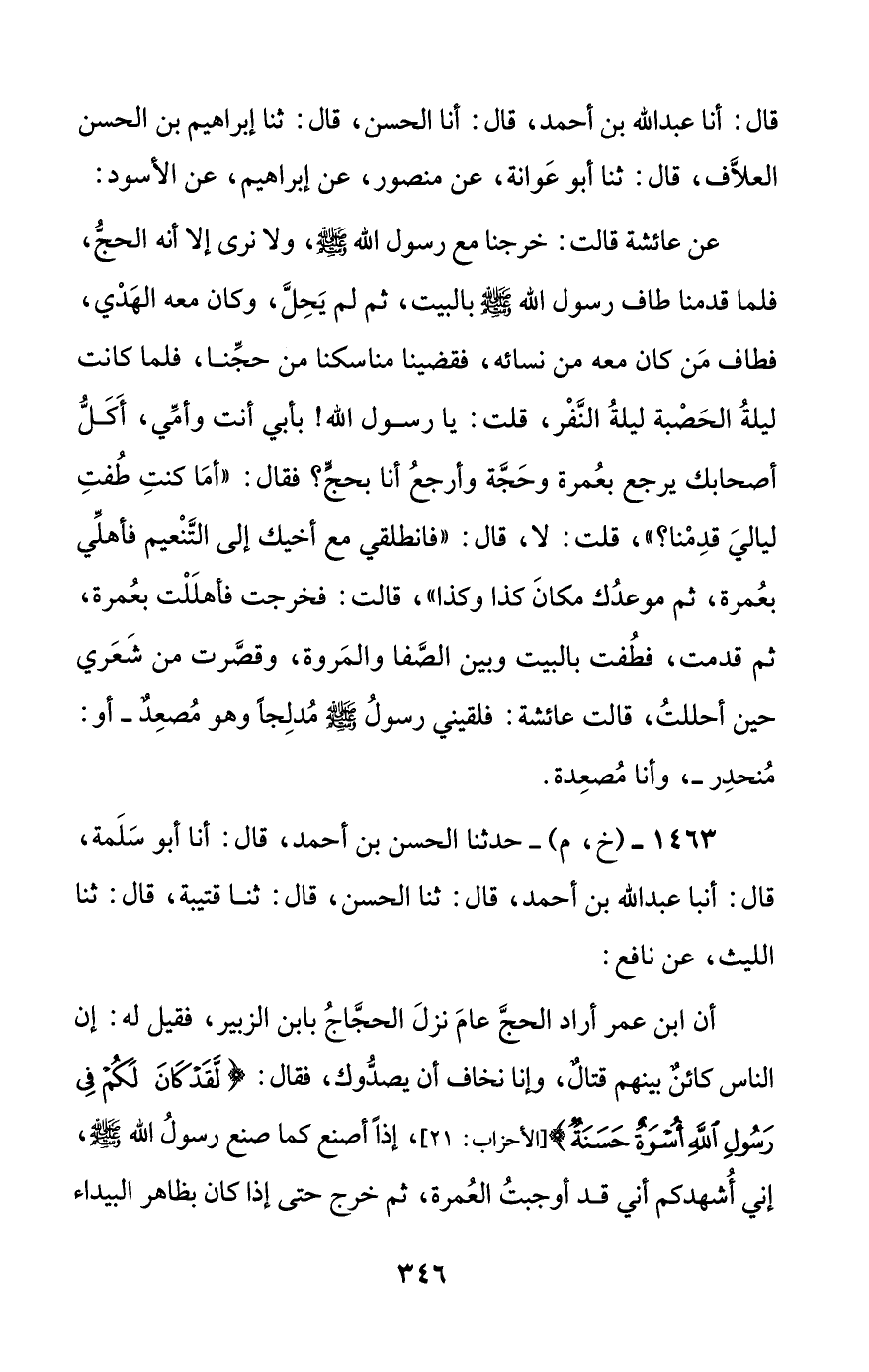 1463 - (خ، م) - حدثنا الحسن بن أحمد، قال: أنا أبو سلمة، قال: أنبا عبد الله بن أحمد، قال: ثنا الحسن، قال: ثنا قتيبة، قال: ثنا الليث، عن نافع: