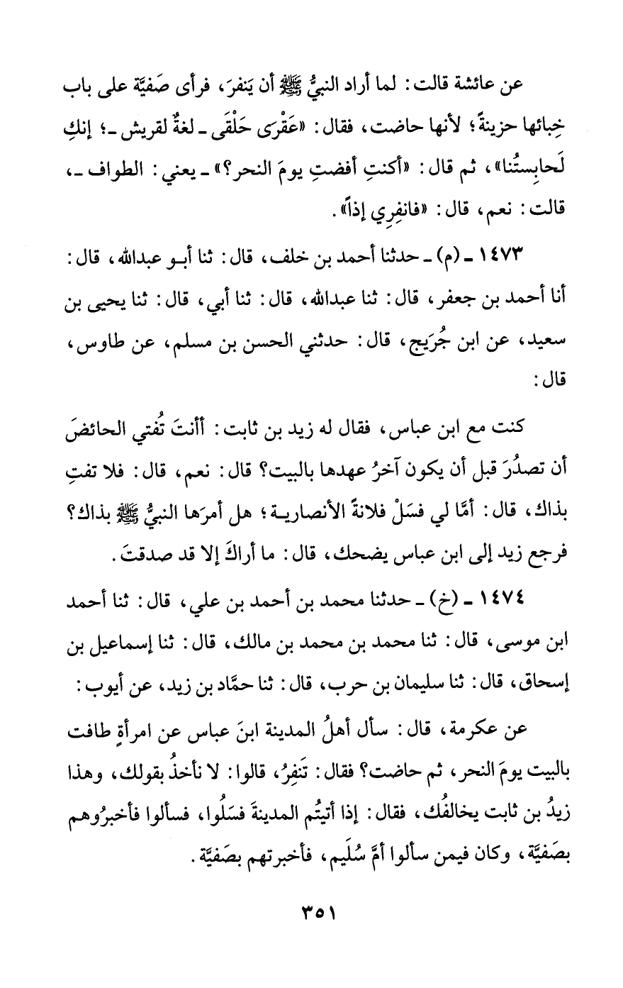 1474 - (خ) - حدثنا محمد بن أحمد بن علي، قال: ثنا أحمد بن موسى، قال: ثنا محمد بن محمد بن مالك، قال: ثنا إسماعيل بن إسحاق، قال: ثنا سليمان بن حرب، قال: ثنا حماد بن زيد، عن أيوب:
