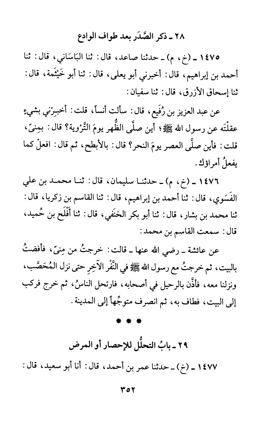 1475 - (خ، م) - حدثنا صاعد، قال: ثنا الباساني، قال: ثنا أحمد بن إبراهيم، قال: أخبرني أبو يعلى، قال: ثنا أبو خيثمة، قال: ثنا إسحاق الأزرق، قال: ثنا سفيان: