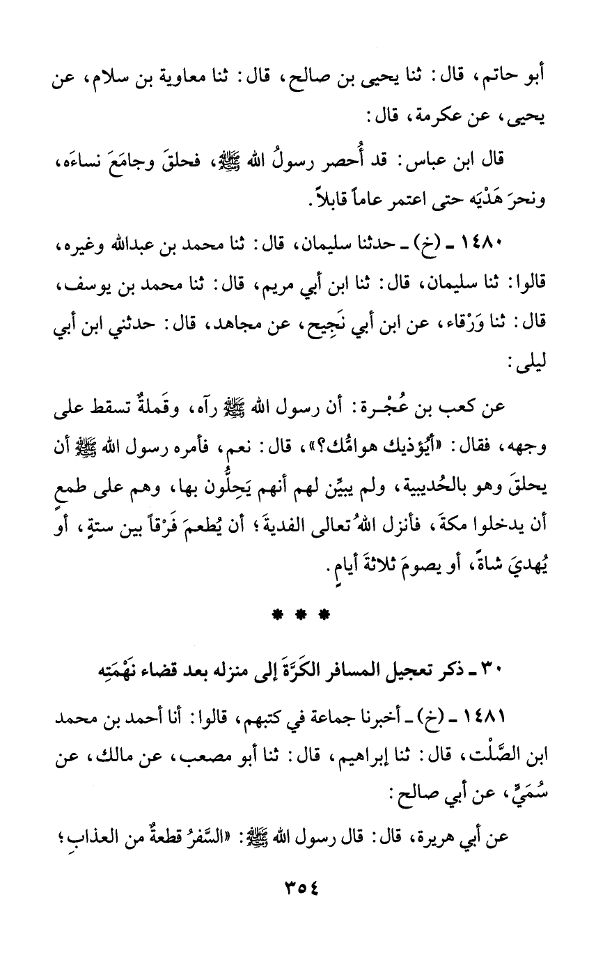 [30] ذكر تعجيل المسافر الكرة إلى منزله بعد قضاء نهمته