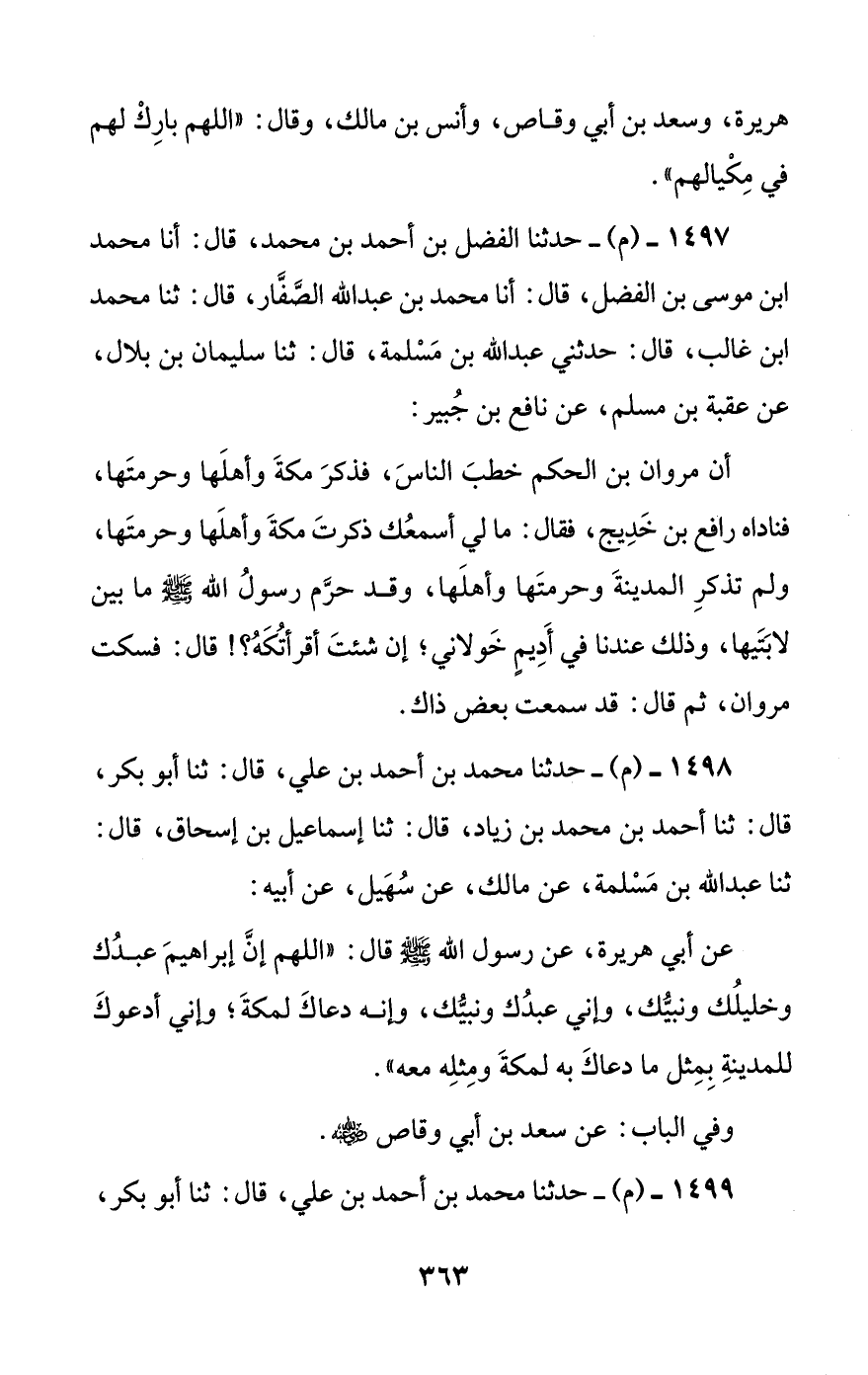 عن أبي هريرة، عن رسول الله صلى الله عليه وسلم قال: ((اللهم إن إبراهيم عبدك وخليلك ونبيك، وإني عبدك ونبيك، وإنه دعاك لمكة؛ وإني أدعوك للمدينة بمثل ما دعاك به لمكة ومثله معه)).