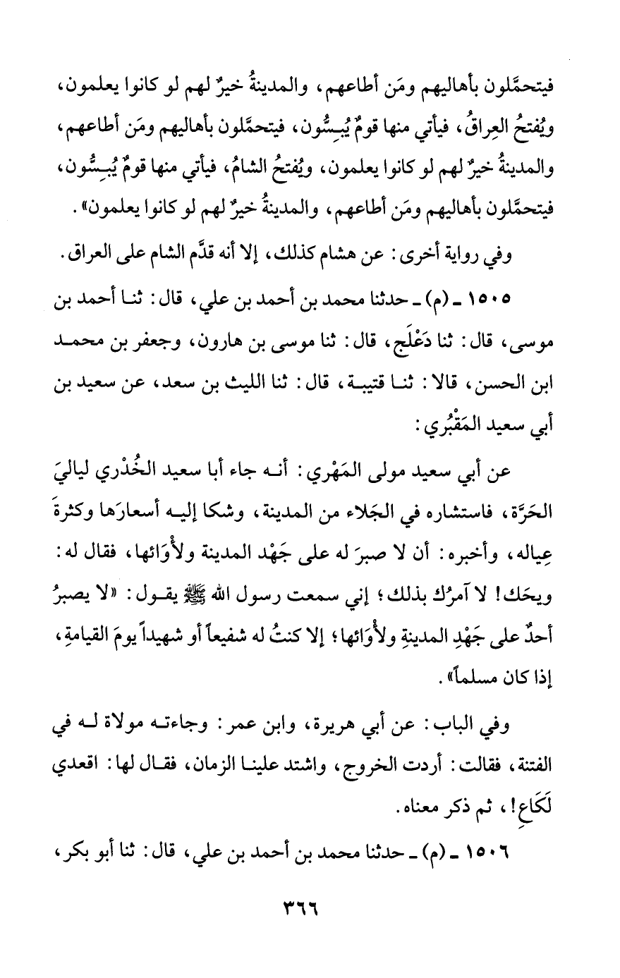 1505 - (م) - حدثنا محمد بن أحمد بن علي، قال: ثنا أحمد بن موسى، قال: ثنا دعلج، قال: ثنا موسى بن هارون، وجعفر بن محمد ابن الحسن، قالا: ثنا قتيبة، قال: ثنا الليث بن سعد، عن سعيد بن أبي سعيد المقبري: