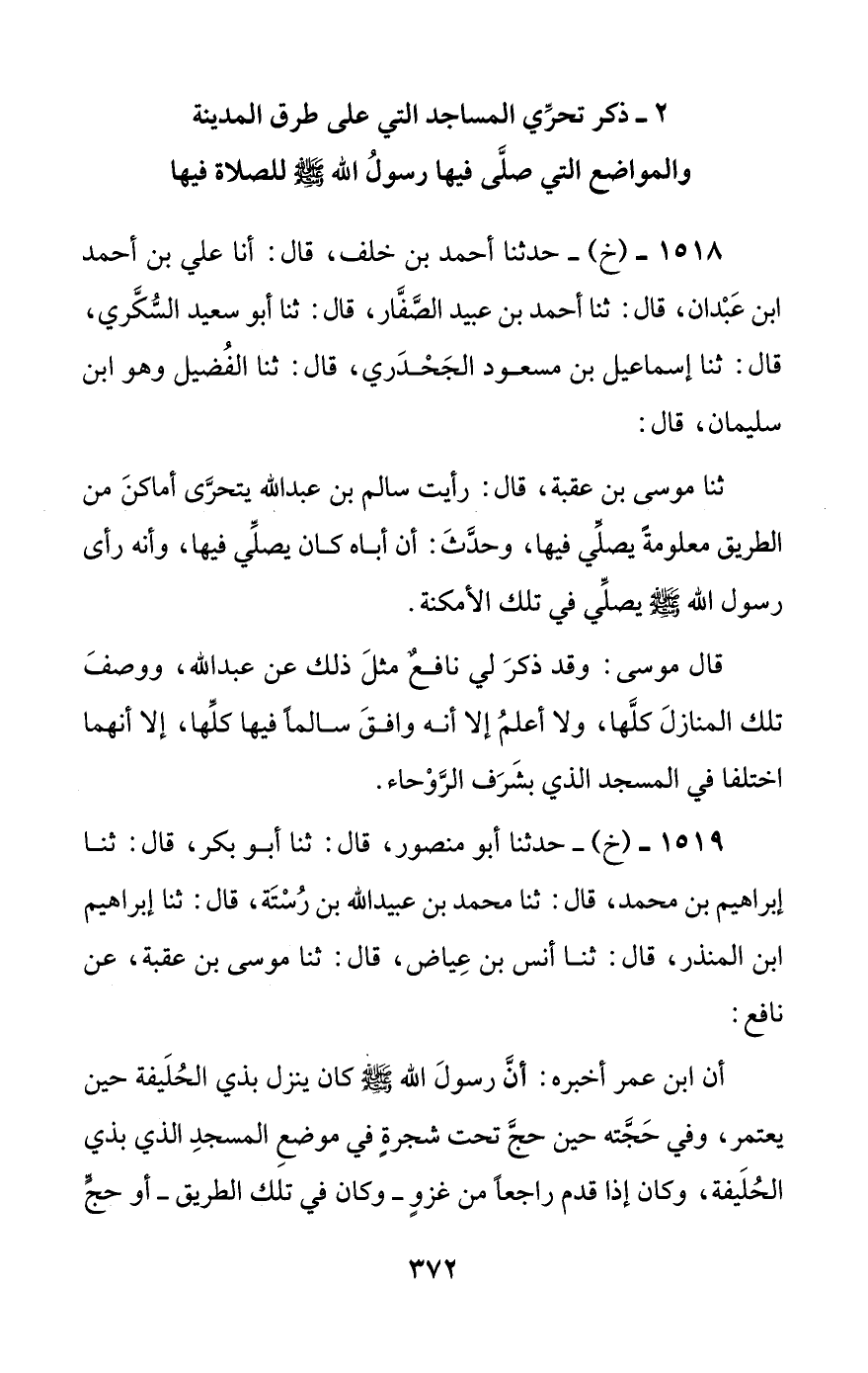 [2] ذكر تحري المساجد التي على طرق المدينة والمواضع التي صلى فيها رسول الله صلى الله عليه وسلم للصلاة فيها