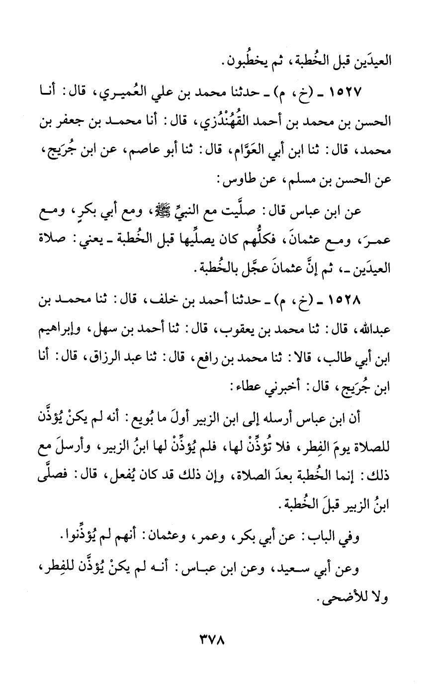 1527 - (خ، م) - حدثنا محمد بن علي العميري، قال: أنا الحسن بن محمد بن أحمد القهندزي، قال: أنا محمد بن جعفر بن محمد، قال: ثنا ابن أبي العوام، قال: ثنا أبو عاصم، عن ابن جريج، عن الحسن بن مسلم، عن طاوس: