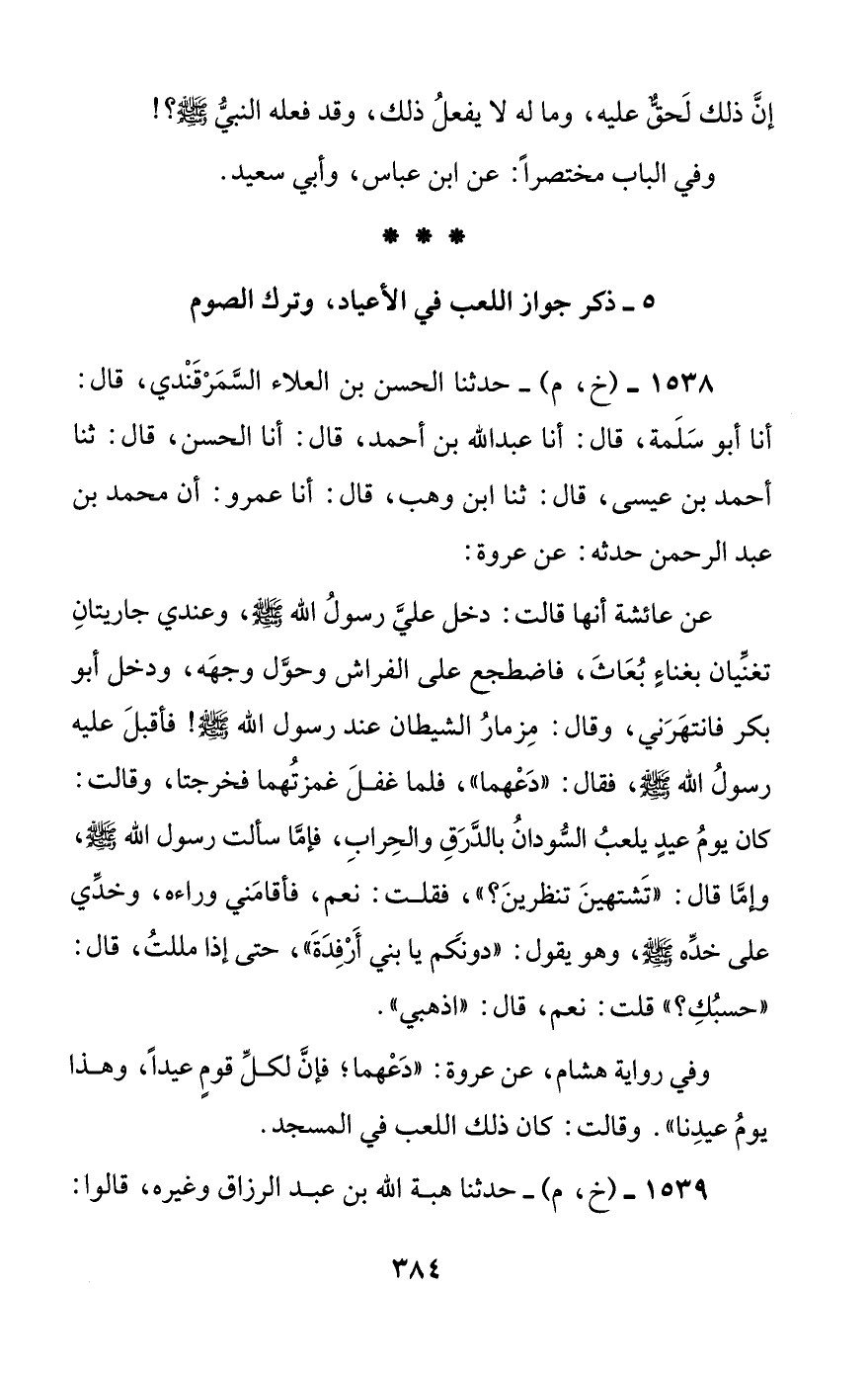 [5] ذكر جواز اللعب في الأعياد، وترك الصوم