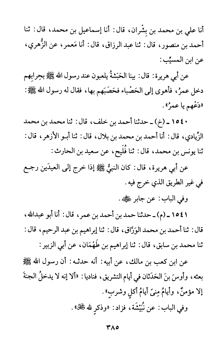 1540 - (خ) - حدثنا أحمد بن خلف، قال: ثنا محمد بن محمد الزيادي، قال: أنا أحمد بن محمد بن بلال، قال: ثنا أبو الأزهر، قال: ثنا يونس بن محمد، قال: ثنا فليح، عن سعيد بن الحارث: