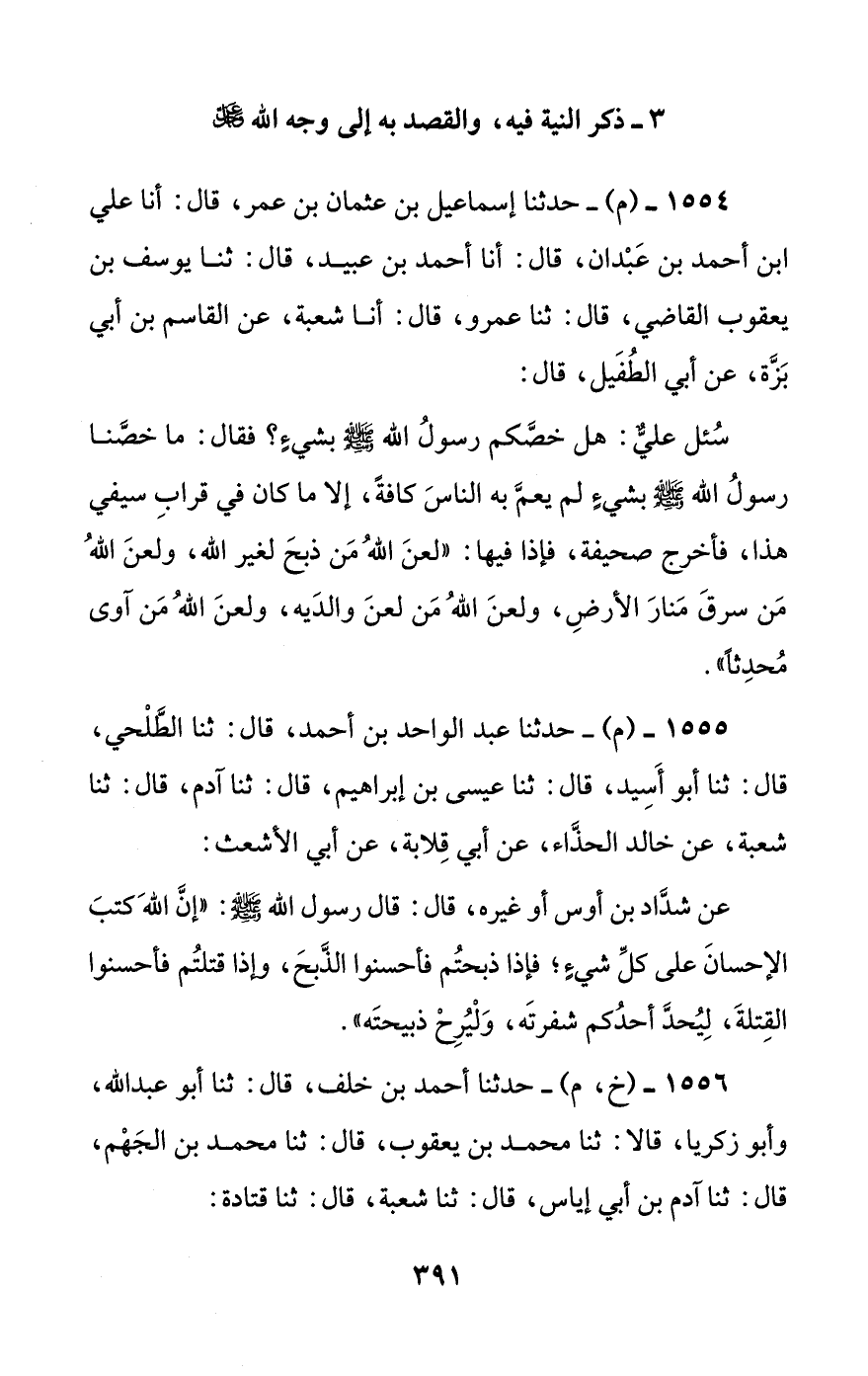 [3] ذكر النية فيه، والقصد به إلى وجه الله عز وجل
