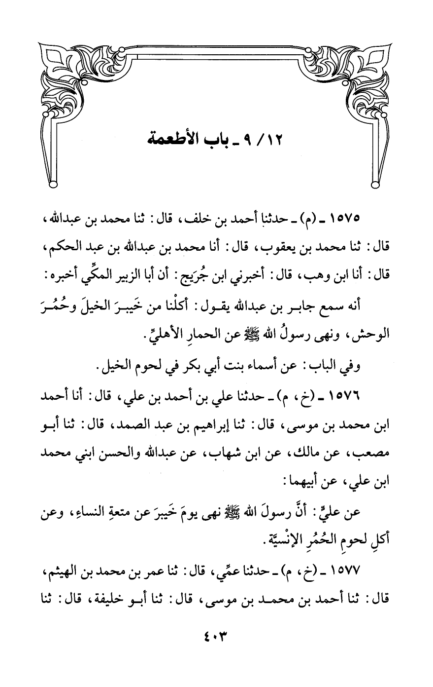 أنه سمع جابر بن عبد الله يقول: أكلنا من خيبر الخيل وحمر الوحش، ونهى رسول الله صلى الله عليه وسلم عن الحمار الأهلي.