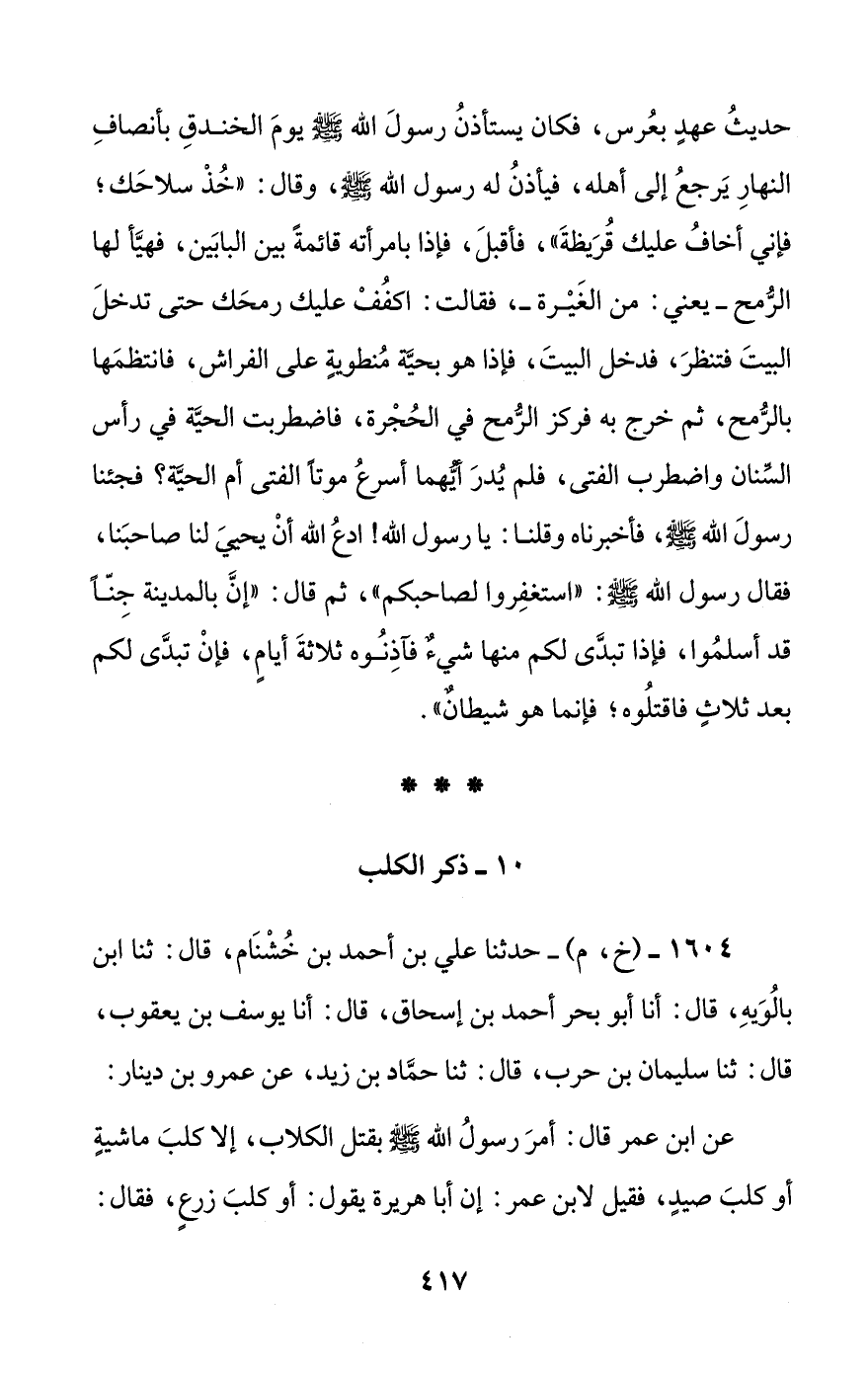 عن ابن عمر قال: أمر رسول الله صلى الله عليه وسلم بقتل الكلاب، إلا كلب ماشية أو كلب صيد، فقيل لابن عمر: إن أبا هريرة يقول: أو كلب زرع، فقال: #418# إن لأبي هريرة زرعا.