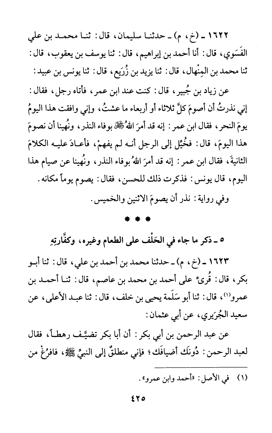 1622 - (خ، م) - حدثنا سليمان، قال: ثنا محمد بن علي الفسوي، قال: أنا أحمد بن إبراهيم، قال: ثنا يوسف بن يعقوب، قال: ثنا محمد بن المنهال، قال: ثنا يزيد بن زريع، قال: ثنا يونس بن عبيد: