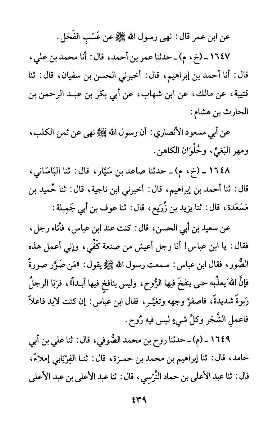 1649 - (م) - حدثنا روح بن محمد الصوفي، قال: ثنا علي بن أبي حامد، قال: ثنا إبراهيم بن محمد بن حمزة، قال: ثنا الفريابي إملاء، قال: ثنا عبد الأعلى بن حماد النرسي، قال: ثنا عبد الأعلى بن عبد الأعلى #440# السامي، قال: ثنا يحيى بن أبي إسحاق، عن سعيد بن أبي الحسن، قال: