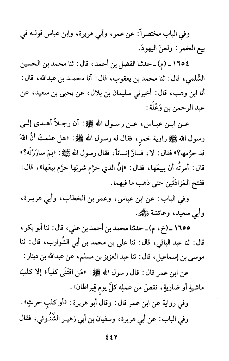 1654 - (م) - حدثنا الفضل بن أحمد، قال: ثنا محمد بن الحسين السلمي، قال: ثنا محمد بن يعقوب، قال: أنا محمد بن عبد الله، قال: أنا ابن وهب، قال: أخبرني سليمان بن بلال، عن يحيى بن سعيد، عن عبد الرحمن بن وعلة: