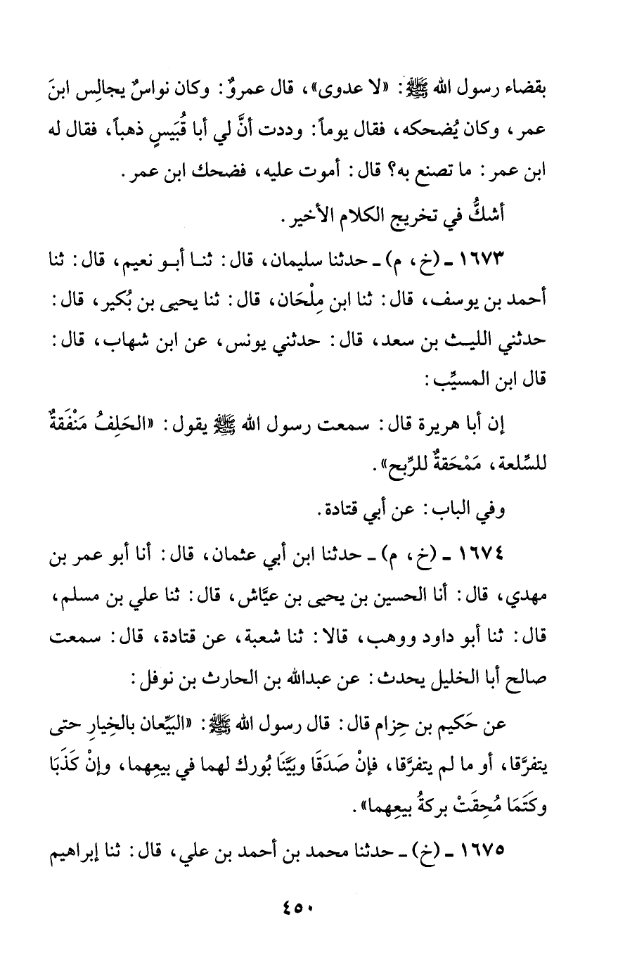 1673 - (خ، م) - حدثنا سليمان، قال: ثنا أبو نعيم، قال: ثنا أحمد بن يوسف، قال: ثنا ابن ملحان، قال: ثنا يحيى بن بكير، قال: حدثني الليث بن سعد، قال: حدثني يونس، عن ابن شهاب، قال: قال ابن المسيب: