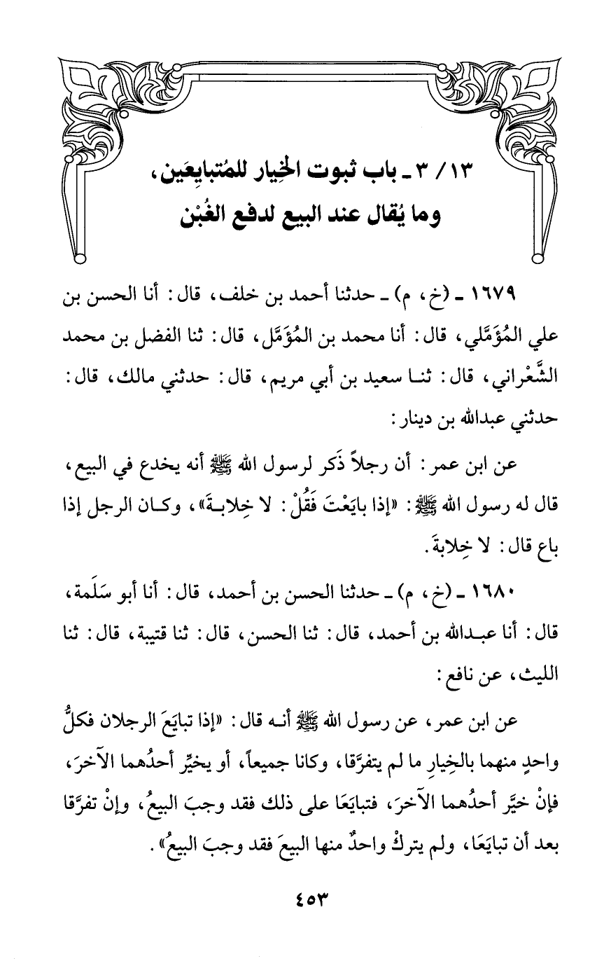 [13/ 3] باب ثبوت الخيار للمتبايعين، وما يقال عند البيع لدفع الغبن