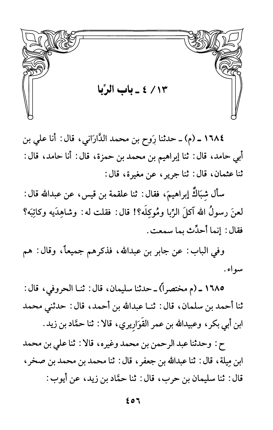 1684 - (م) - حدثنا روح بن محمد الداراني، قال: أنا علي بن أبي حامد، قال: ثنا إبراهيم بن محمد بن حمزة، قال: أنا حامد، قال: ثنا عثمان، قال: ثنا جرير، عن مغيرة، قال: