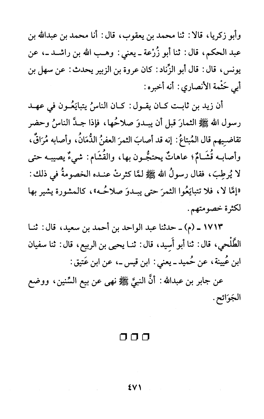 عن جابر بن عبد الله: أن النبي صلى الله عليه وسلم نهى عن بيع السنين، ووضع الجوائح.