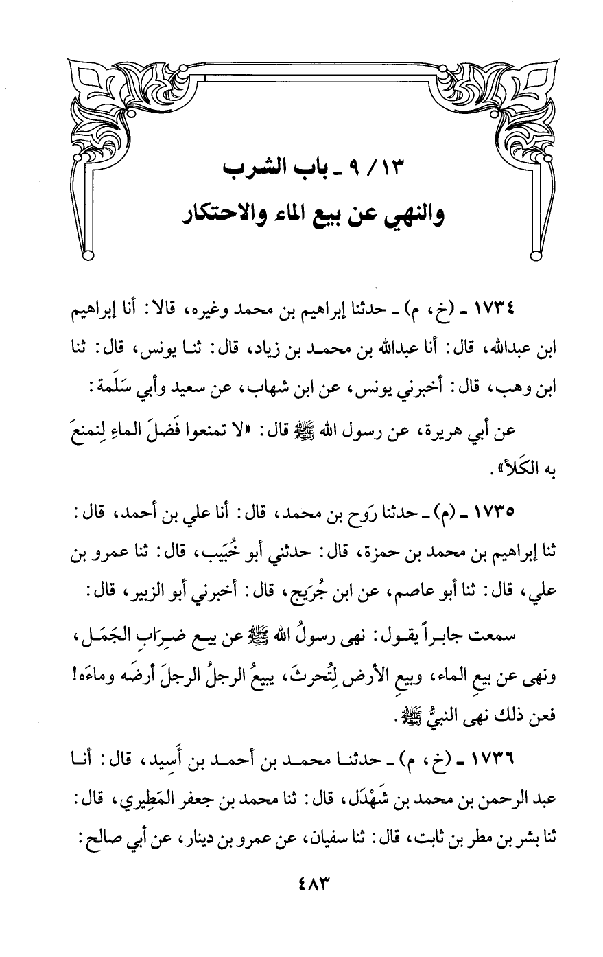 [13/ 9] باب الشرب والنهي عن بيع الماء والاحتكار