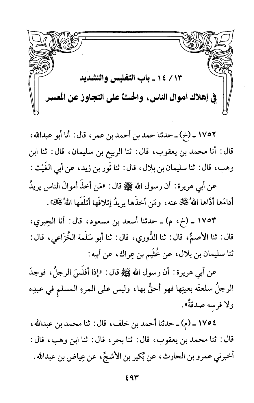 [13/ 14] باب التفليس والتشديد في إهلاك أموال الناس، والحث على التجاوز عن المعسر
