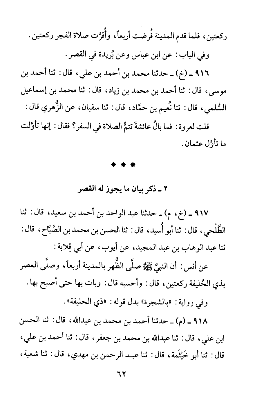 917 - (خ، م) - حدثنا عبد الواحد بن أحمد بن سعيد، قال: ثنا الطلحي، قال: ثنا أبو أسيد، قال: ثنا الحسن بن محمد بن الصباح، قال: ثنا عبد الوهاب بن عبد المجيد، عن أيوب، عن أبي قلابة: