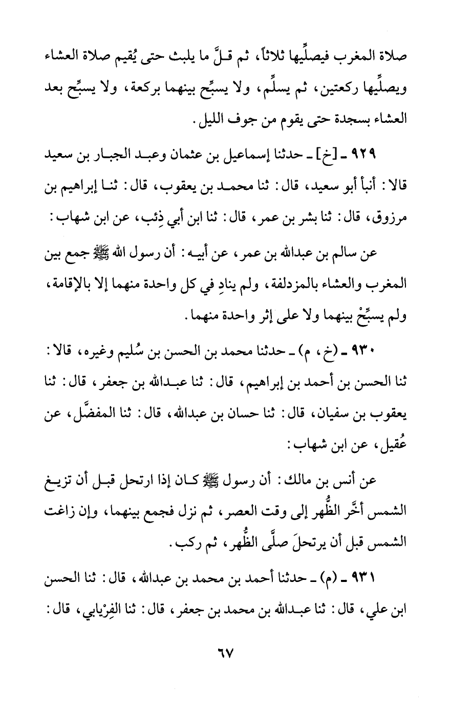 930 - (خ، م) - حدثنا محمد بن الحسن بن سليم وغيره، قالا: ثنا الحسن بن أحمد بن إبراهيم، قال: ثنا عبد الله بن جعفر، قال: ثنا يعقوب بن سفيان، قال: ثنا حسان بن عبد الله، قال: ثنا المفضل، عن عقيل، عن ابن شهاب: