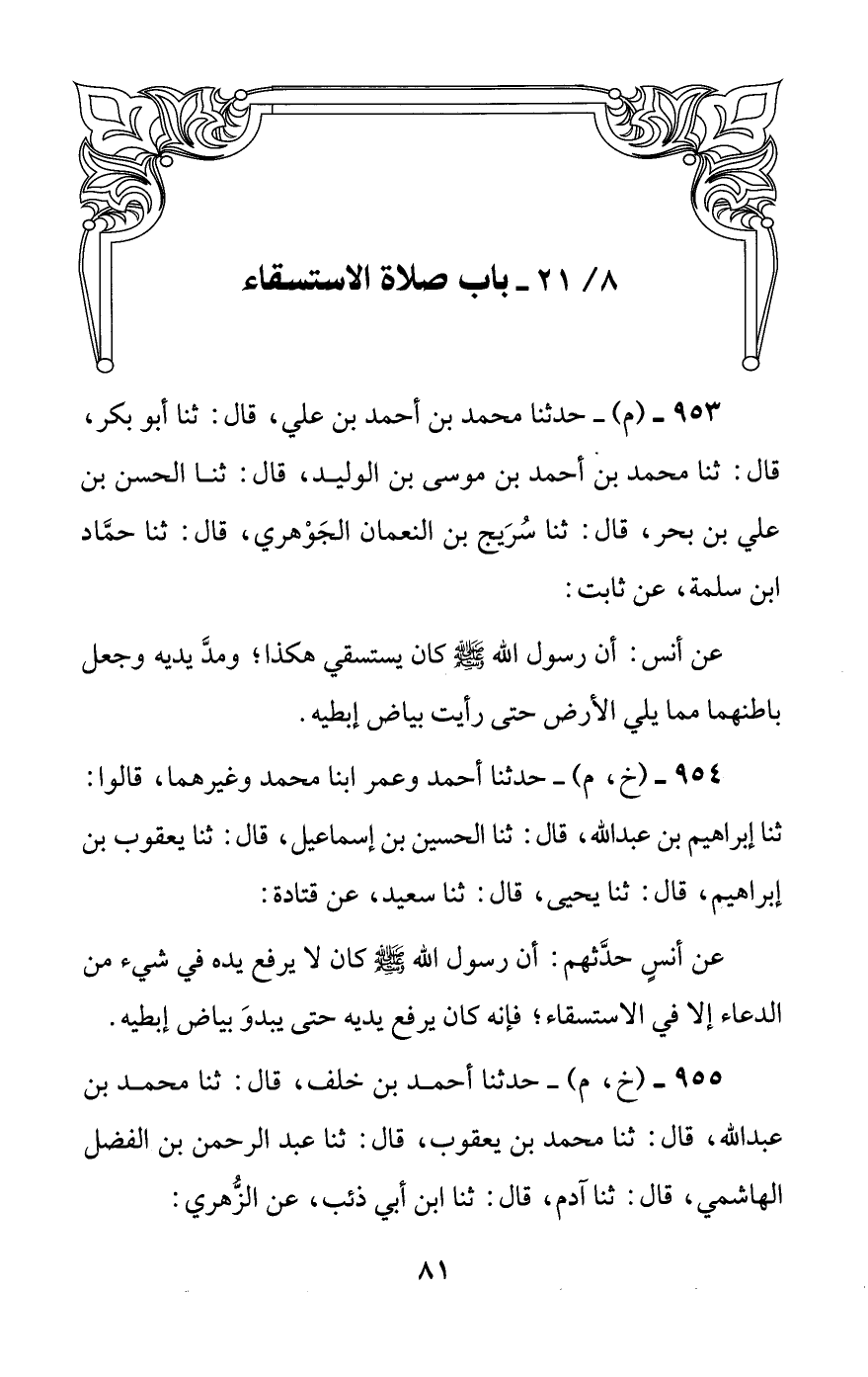 955 - (خ، م) - حدثنا أحمد بن خلف، قال: ثنا محمد بن عبد الله، قال: ثنا محمد بن يعقوب، قال: ثنا عبد الرحمن بن الفضل الهاشمي، قال: ثنا آدم، قال: ثنا ابن أبي ذئب، عن الزهري: