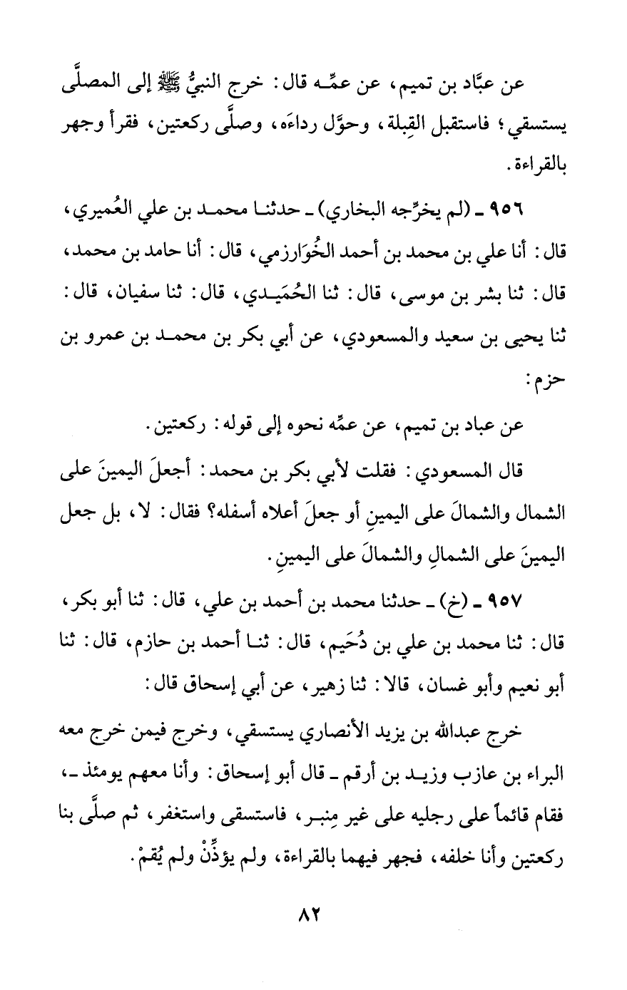 956 - (لم يخرجه البخاري) - حدثنا محمد بن علي العميري، قال: أنا علي بن محمد بن أحمد الخوارزمي، قال: أنا حامد بن محمد قال: ثنا بشر بن موسى، قال: ثنا الحميدي، قال: ثنا سفيان، قال: ثنا يحيى بن سعيد والمسعودي، عن أبي بكر بن محمد بن عمرو بن حزم: