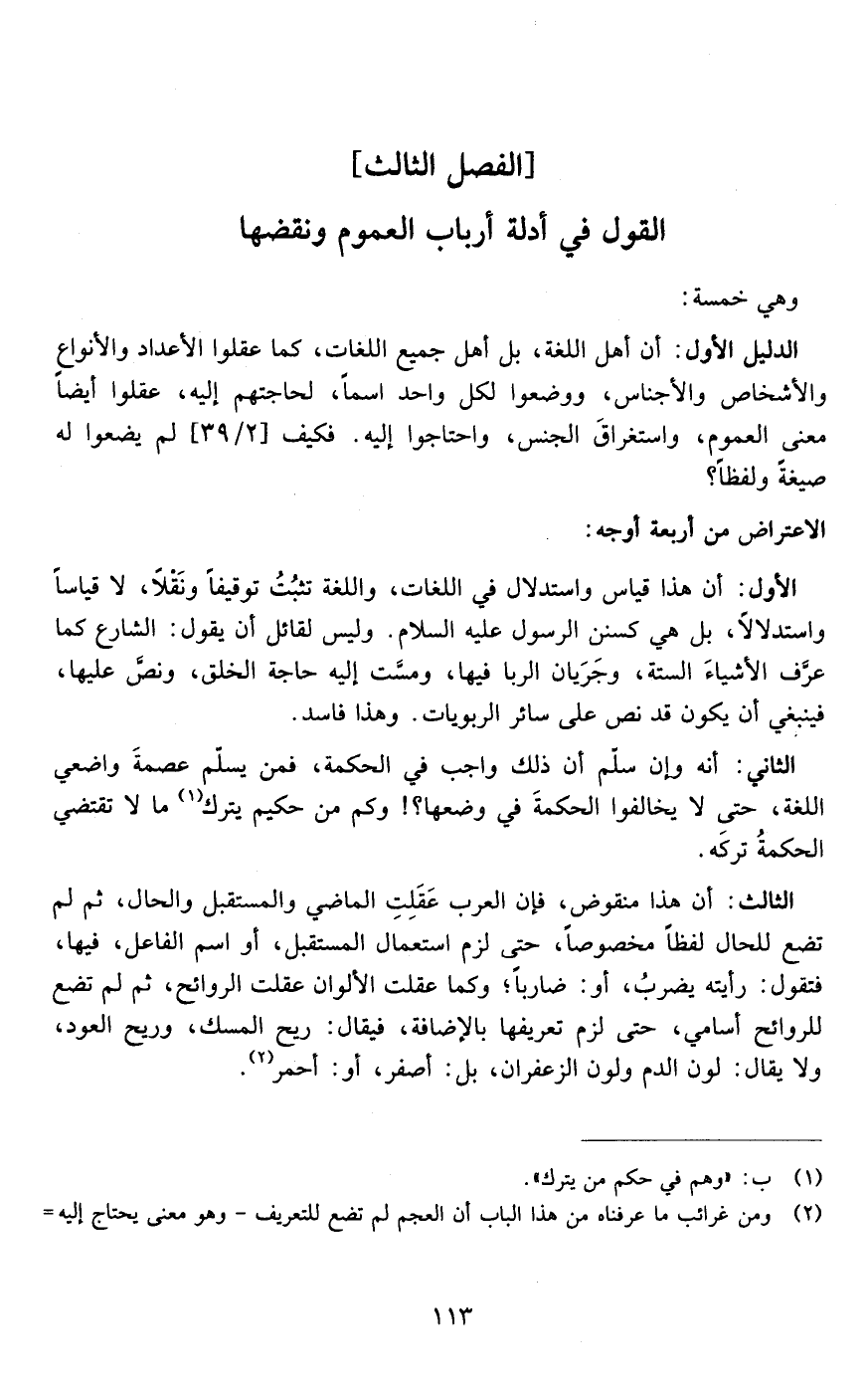 الدليل الأول : أن أهل اللغة بل أهل جميع اللغات كما عقلوا الأعداد والأنواع والأشخاص والأجناس ووضعوا لكل واحدا اسما لحاجتهم إليه عقلوا أيضا معنى العموم واستغراق الجنس واحتاجوا إليه فكيف لم يضعوا له صيغة ولفظا