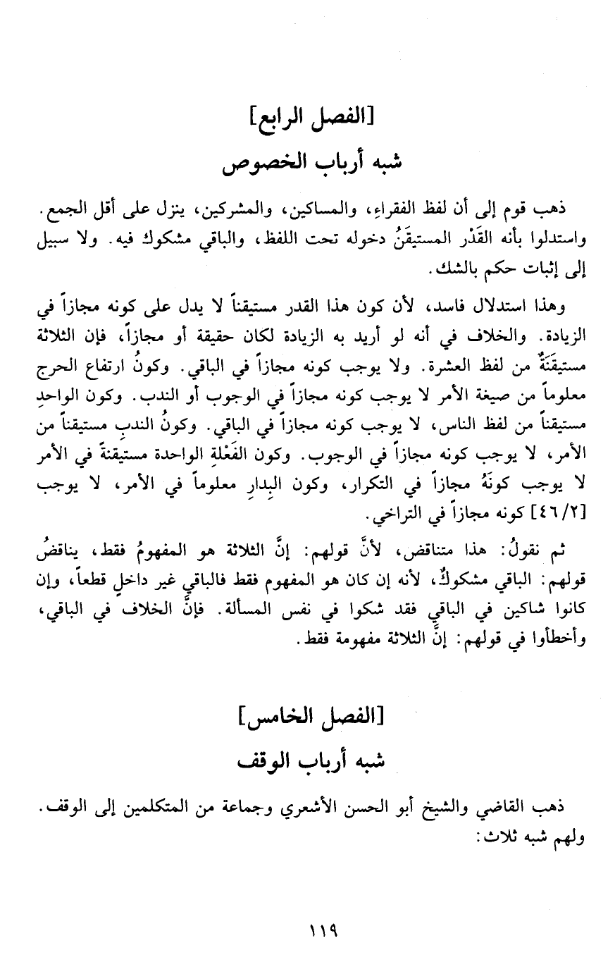 قد ذهب القاضي والأشعري وجماعة من المتكلمين إلى الوقف ولهم شبه ثلاث :