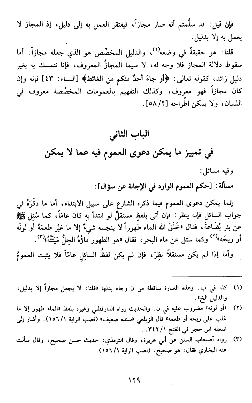 الباب الثاني في تمييز ما يمكن دعوى العموم فيه عما لا يمكن