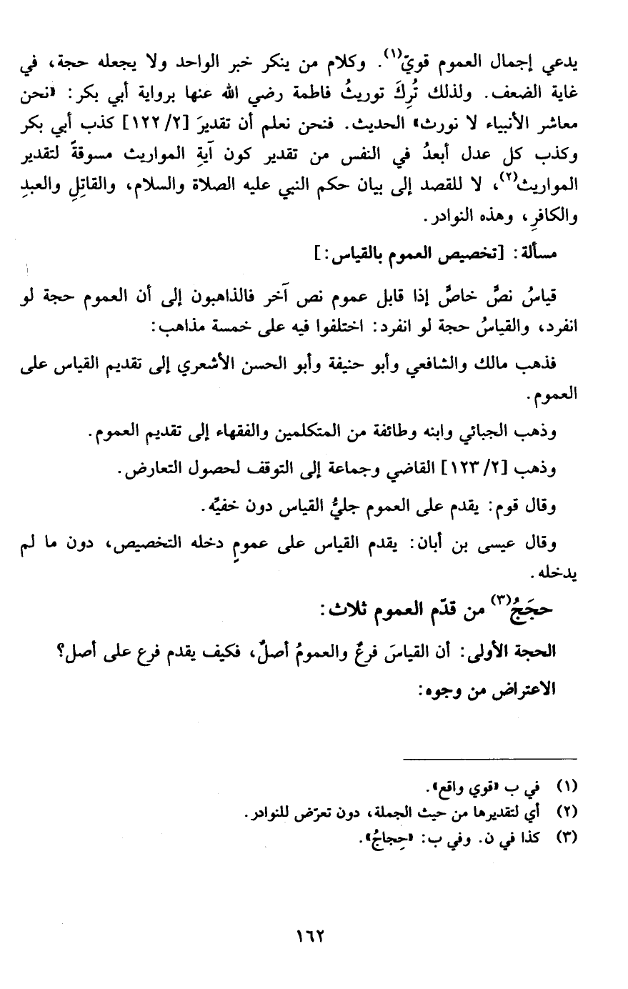 ذهب الجبائي وابنه وطائفة من المتكلمين والفقهاء إلى تقديم العموم