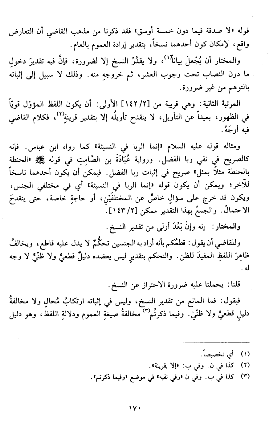 المرتبة الثانية:وهي قريبة من الأولى أن يكون اللفظ المؤول قويا في الظهور بعيدا عن التأويل لا ينقدح تأويله إلا بقرينة فكلام القاضي فيه أوجه.