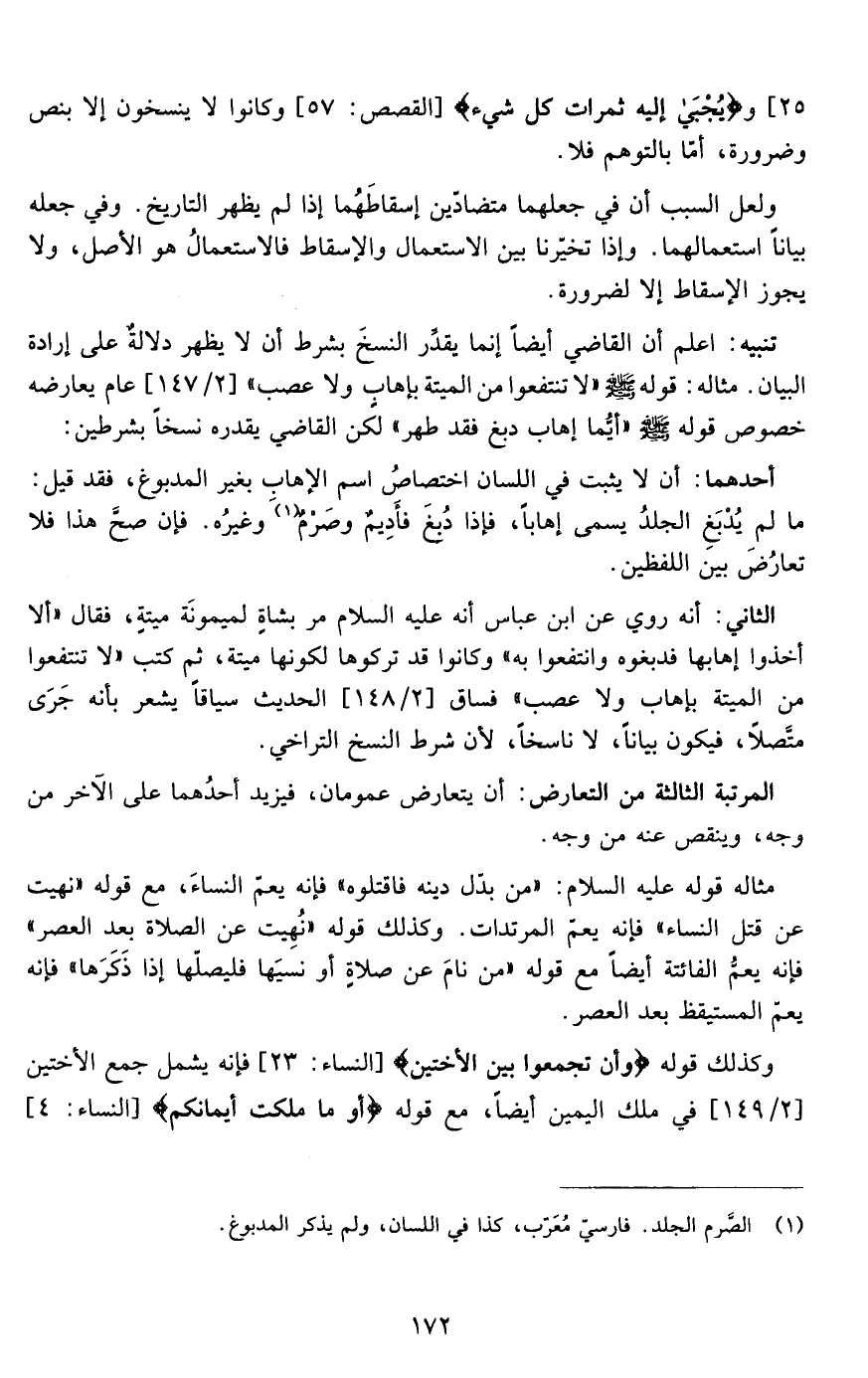 من الآية25[و {يُجْبَى إِلَيْهِ ثَمَرَاتُ كُلِّ شَيْءٍ } ]القصص: من الآية57[وكانوا لا ينسخون إلا بنص وضرورة أما بالتوهم فلا