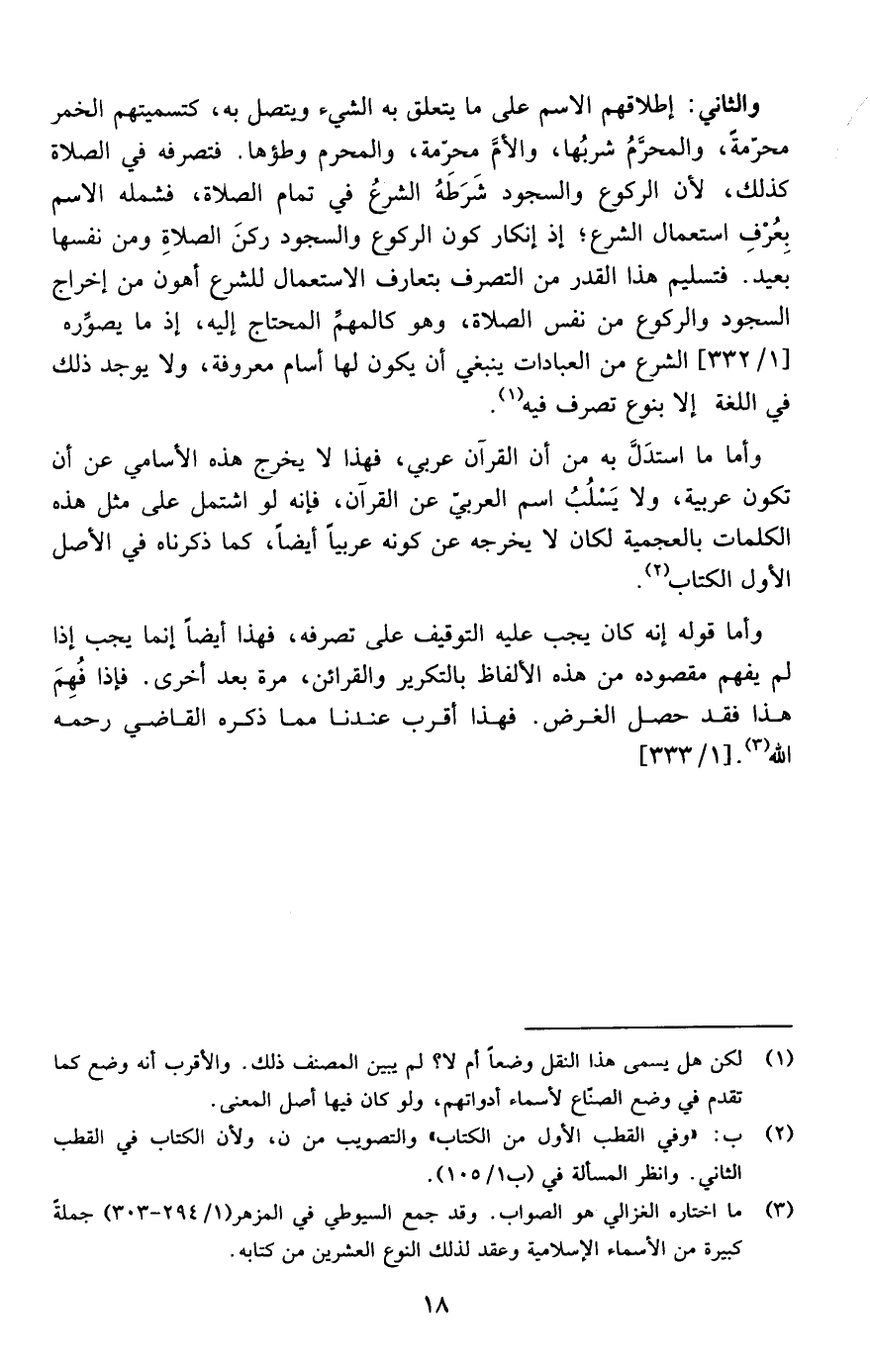 وأما ما استدل به من أن القرآن عربي فهذا لا يخرج هذه الأسامي عن أن تكون عربية ولا يسلب اسم العربي عن القرآن فإنه لو اشتمل على مثل هذه الكلمات بالعجمية لكان لا يخرجه عن كونه عربيا أيضا كما ذكرناه في القطب الأول من الكتاب