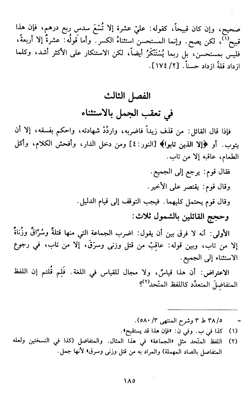 الفصل الثالث في تعقب الجمل بالاستثناء