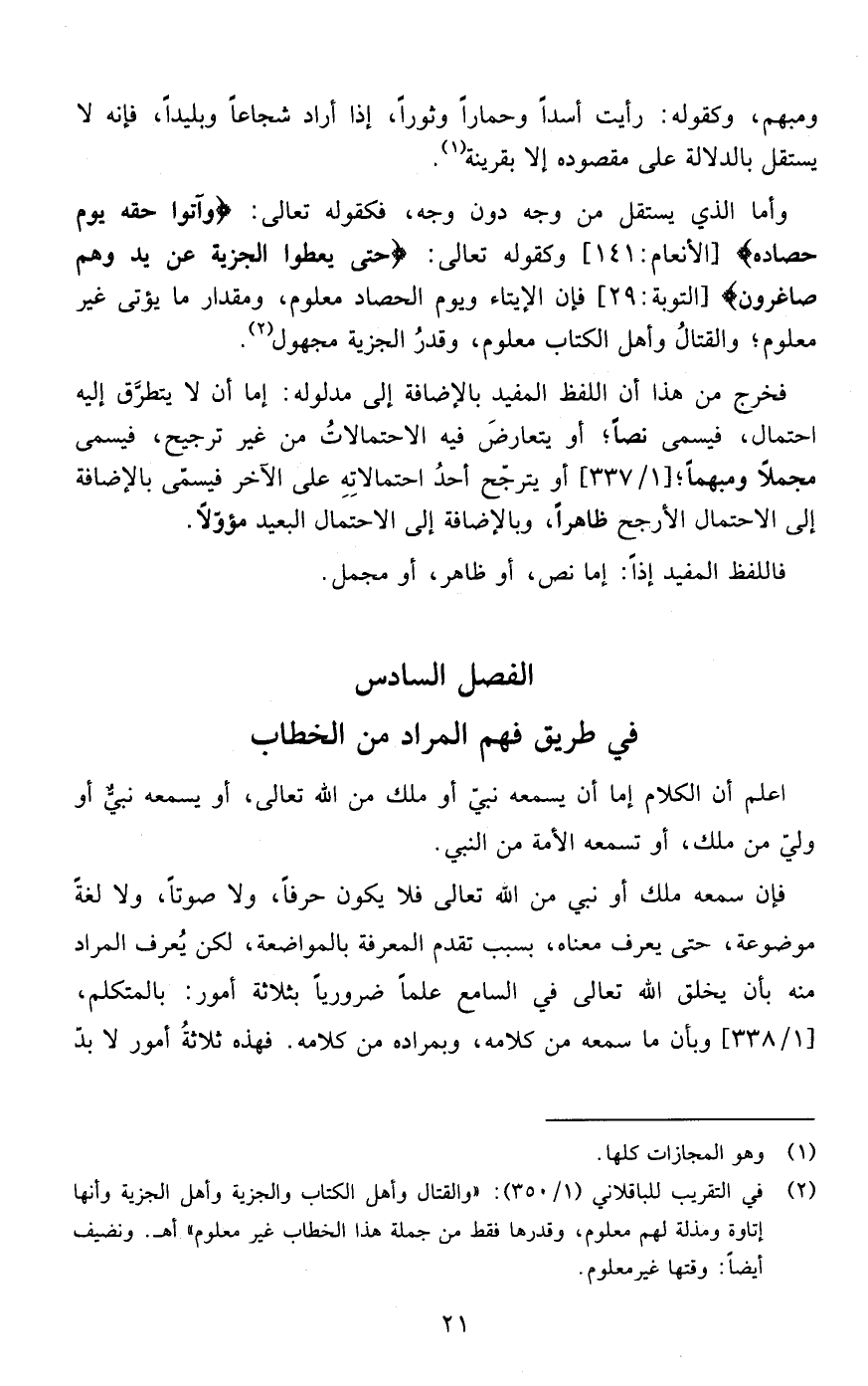 وأما الذي يستقل من وجه دون وجه فكقوله تعالى { وَآتُوا حَقَّهُ يَوْمَ حَصَادِهِ} [الأنعام: من الآية141] وكقوله تعالى :{ حَتَّى يُعْطُوا الْجِزْيَةَ عَنْ يَدٍ وَهُمْ صَاغِرُونَ} [التوبة: من الآية29] فإن الإيتاء ويوم الحصاد معلوم ومقدار ما يؤتى غير معلوم والقتال وأهل الكتاب معلوم وقدر الجزية مجهول