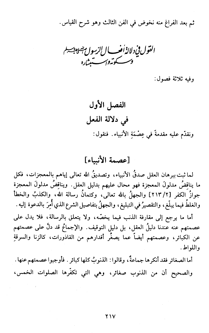 ونقدم عليه مقدمة في عصمة الأنبياء فنقول :